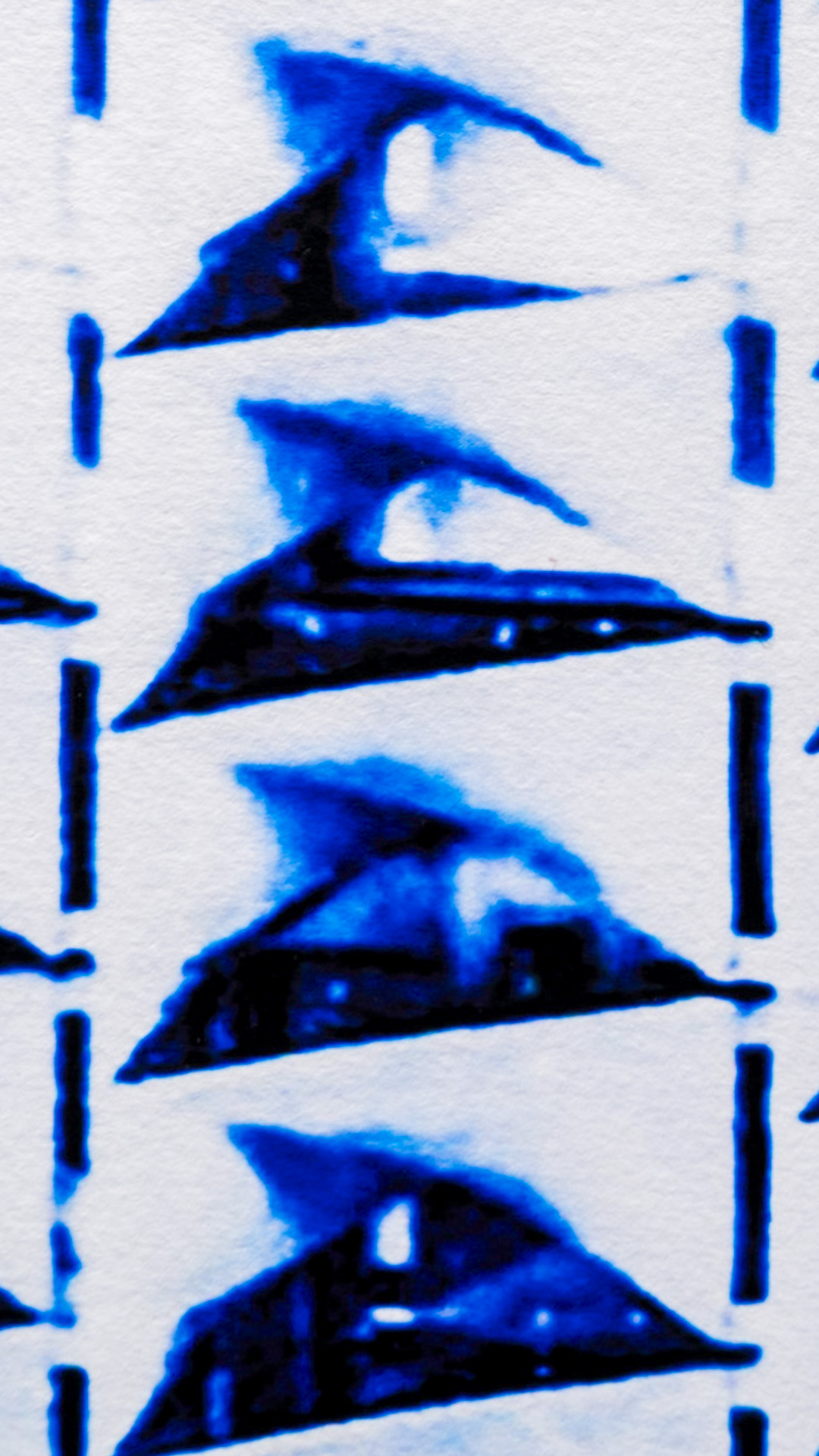 A digital copying process that finally leads to extreme reduction into an abstract graphic pattern, but at the heart very real photography.